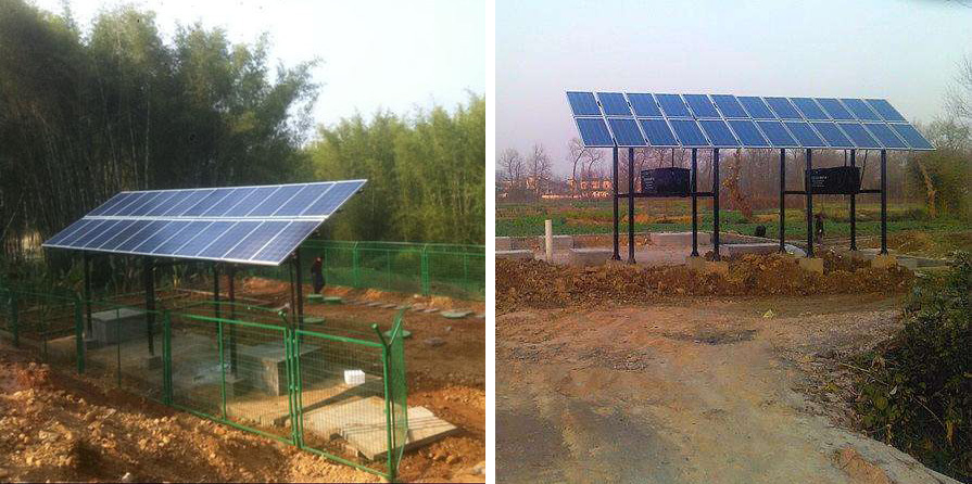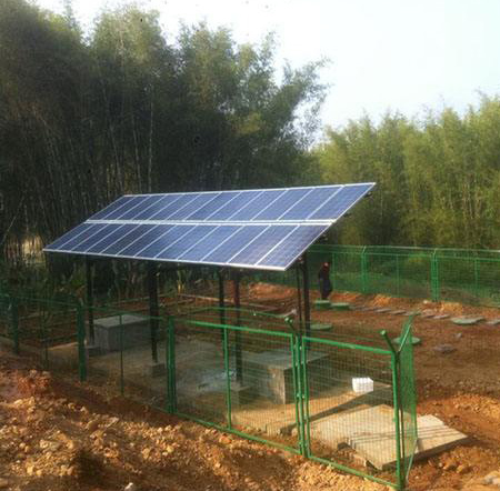 太陽能一體化污水處理工藝是濰坊中僑環(huán)境工程有限公司針對農(nóng)村生活污水特性及建設(shè)、運行、管理方面的特點,引入太陽能為能源,結(jié)合太陽能光伏技術(shù),借鑒并改造傳統(tǒng)成熟污水處理工藝,使之適應(yīng)太陽能特點,強化氮、磷的處理,提高污水處理效率及處理深度,新型的全自動的農(nóng)村生活污水處理新技術(shù)。太陽能污水處理設(shè)備是由太陽能光伏板、蓄電池組、曝氣系統(tǒng)、回流系統(tǒng)、微電腦控制系統(tǒng)和遠(yuǎn)程通訊系統(tǒng)等組成。通過太陽能光伏板將太陽能轉(zhuǎn)為電能,作為曝氣設(shè)施、回流設(shè)施的動力,多余能量儲存于蓄電池中;根據(jù)優(yōu)化調(diào)試后的數(shù)據(jù),通過微電腦控制系統(tǒng)完成自動化控制,自動運行曝氣設(shè)施、回流設(shè)施及攪拌設(shè)施。工程處理后水質(zhì)達(dá)到中華人民共和國《污水綜合排放標(biāo)準(zhǔn)》(GB8978—1996) 一級標(biāo)準(zhǔn)。