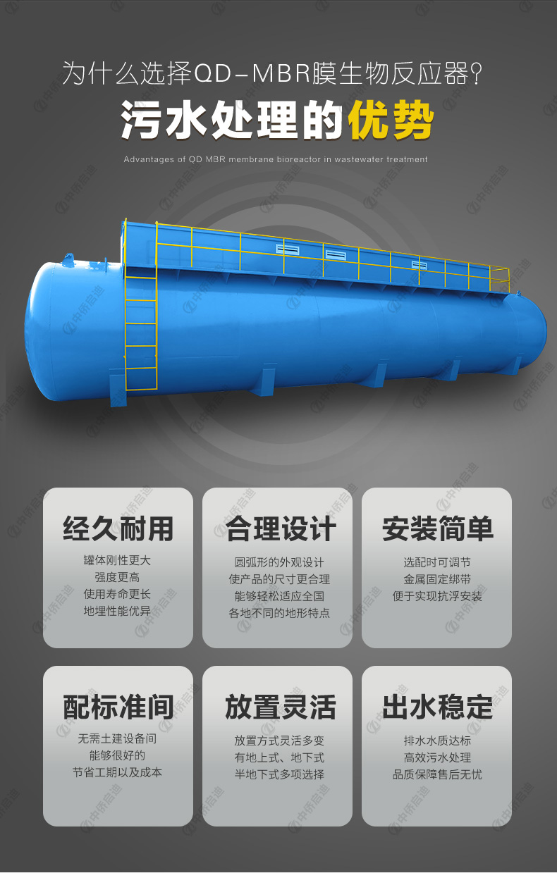 本設(shè)備是中僑啟迪使用新技術(shù)新工藝生產(chǎn)的新型兼氧MBR膜生物反應(yīng)器